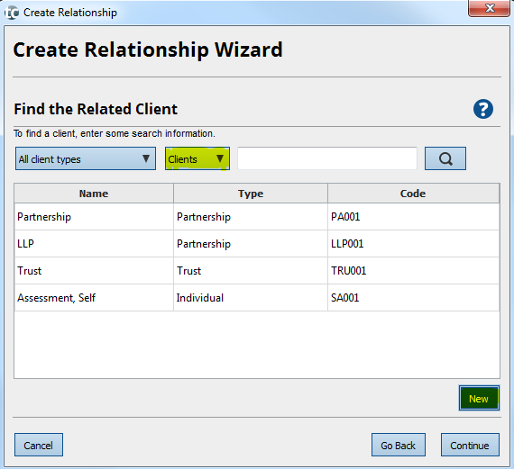 To create a relationship for a director, company secretary or partner who is listed in Practice Manager, complete the following steps: