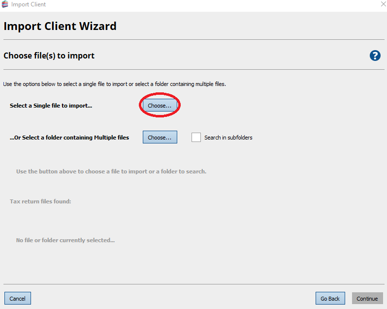 Click on Continue. Click on Choose next to Select a Single File to import….