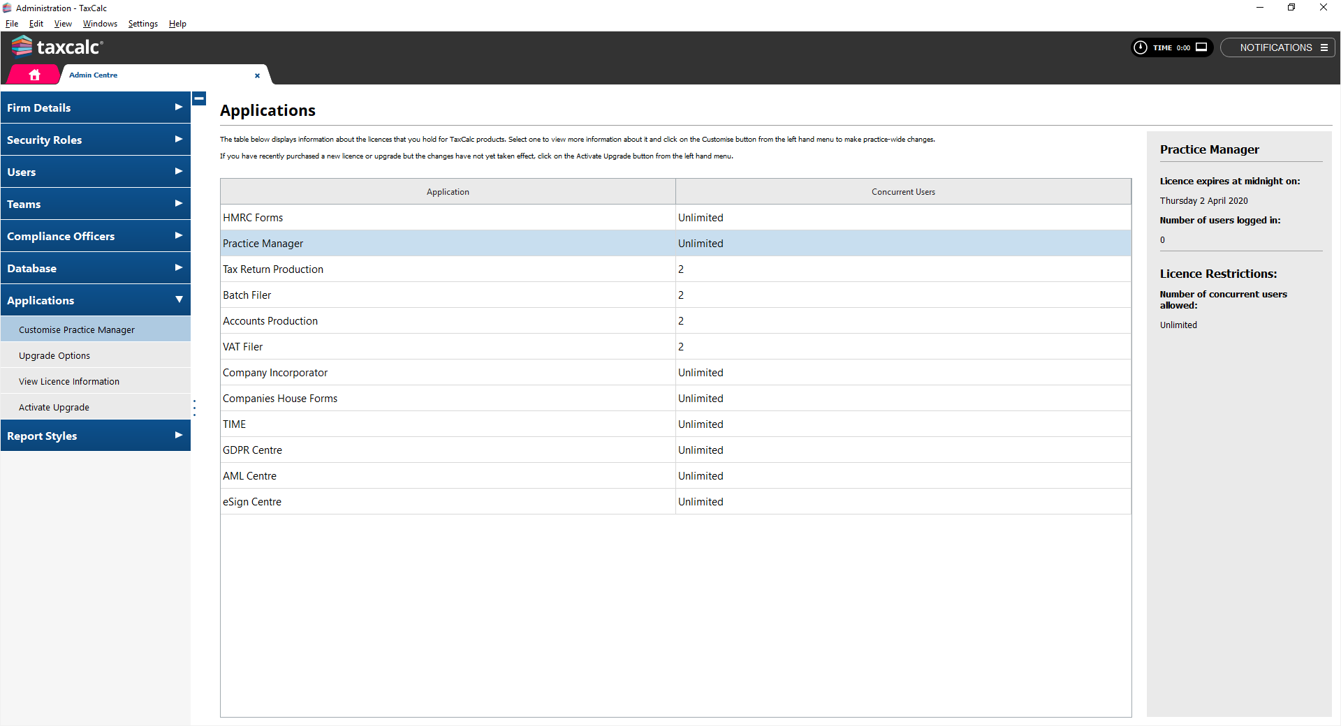- Automatically open Practice Manager when TaxCalc starts – if you select this option the Practice Manager tab will automatically open every time any user opens TaxCalc. This option can be used by any users on either Standalone or Network installations.