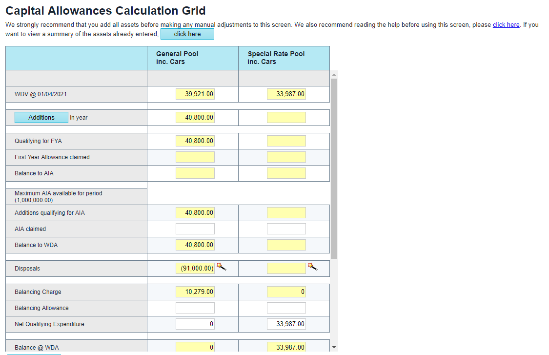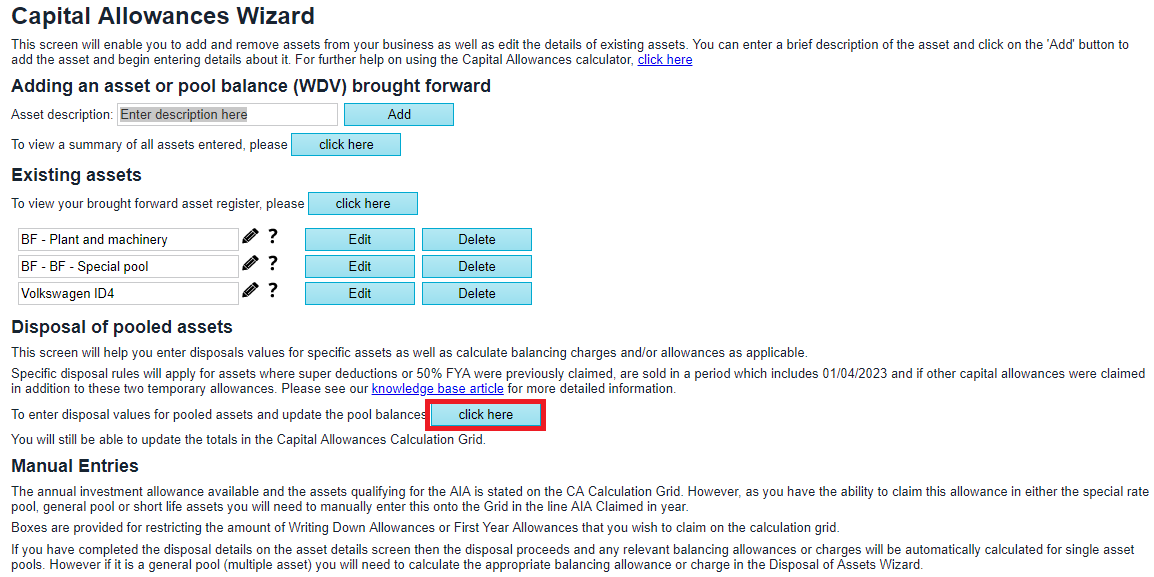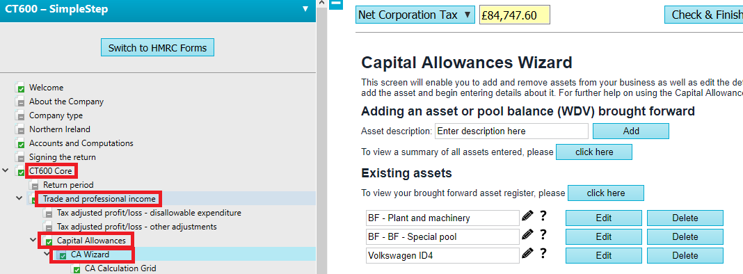 - Browse to the Capital Allowance wizard in your applicable return