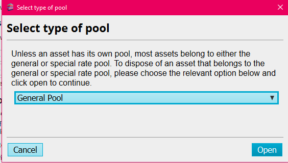 - Choose the type of asset (whichever pool the asset was initially entered in).