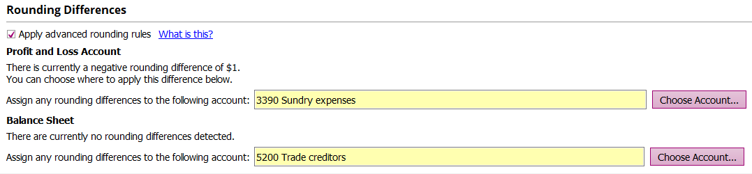 In order to correct the £1 difference, you need to create a journal entry in the current year (2015) postings: Credit £0.20 to Motor Vehicles – cost. Should you wish to change the Profit and Loss account in which rounding differences are being applied, go to Postings > Rounding differences > Choose Account If you would like to assign the Balance Sheet rounding differences separately, go to Postings > Rounding differences > *Tick* Apply advanced rounding rule > Choose Account (bottom one)