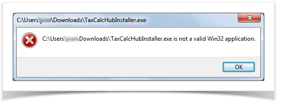 Not a valid Win32 application when trying to install TaxCalc