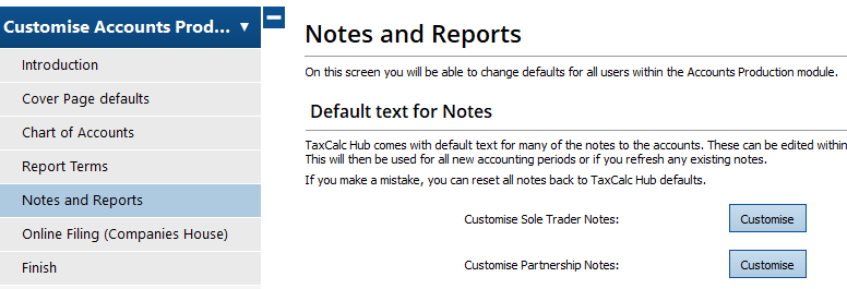 For example, if the total amount of interest you’re declaring is made up of four different interest amounts, instead of just entering the total, you can click on the wand and show each of the four transactions received. This will then populate the total into the taxable interest amount box. The wizard icon can also assist with workings such as mileage allowance and company car expenditure. If you require further clarification on what information can be declared in each box, click on the help link (question mark icon ? at the right-hand side of the box). This will take you to our Help Manual, which provides HMRC documentation, worksheets and examples to assist with your understanding. If you are completing a corporation tax return, please find the link for Do I need to attach accounts to my CT600? This will provide you with more information on attaching iXBRL accounts/PDF attachments to the return itself. Using Accounts ProductionTo create a set of accounts within Accounts Production, please see the below instructions: