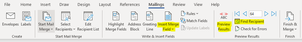 Depending on which version of Microsoft Office you are running, there are different ways to display the output data that comes from the Mail Merge process.