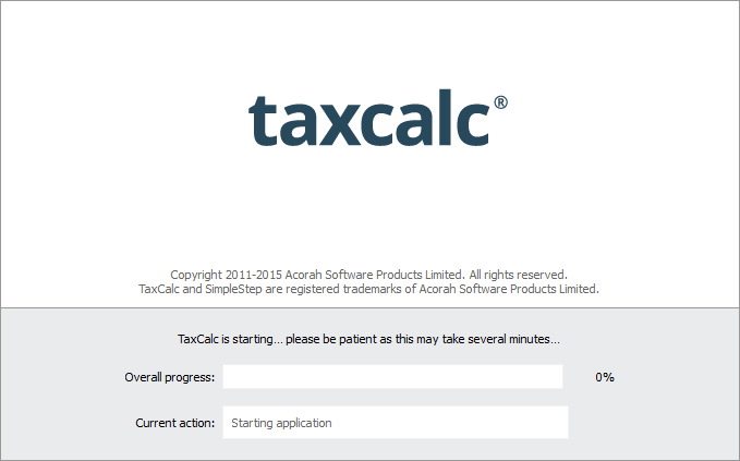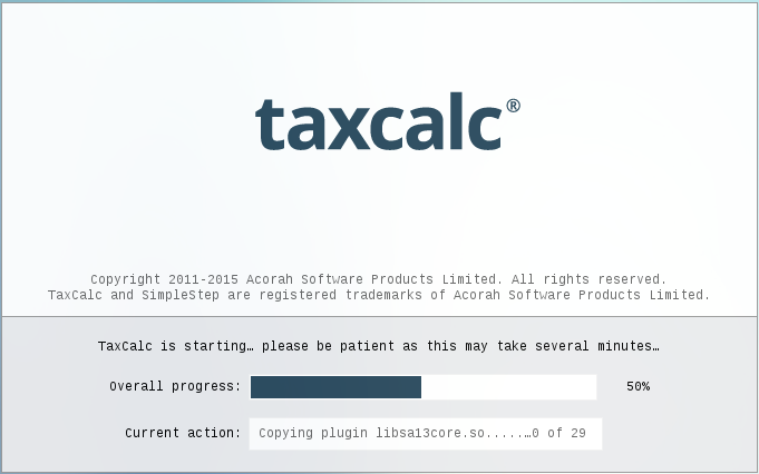 it is possible that some distributions of Linux may not include all the system fonts necessary for TaxCalc to display as intended. This can sometimes make the program display using incorrect fonts. Below is an example of the splash screen without all the necessary fonts, alongside an example with the correct fonts.