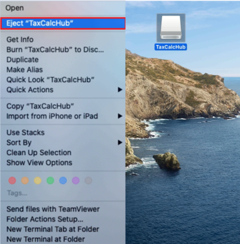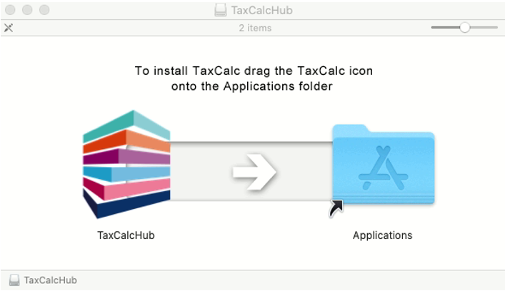 - Drag the TaxCalcHub icon over the applications folder and let go to drop it into Applications.