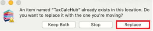 - If you already have TaxCalc installed you will see the following message. Click on Replace.