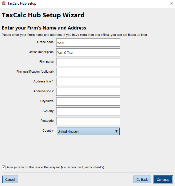 Now enter the firm's details (this will be used on reports).