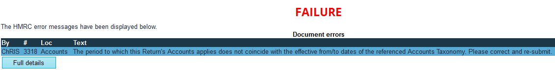 When submitting a CT600 to HMRC you may encounter the following submission error message: