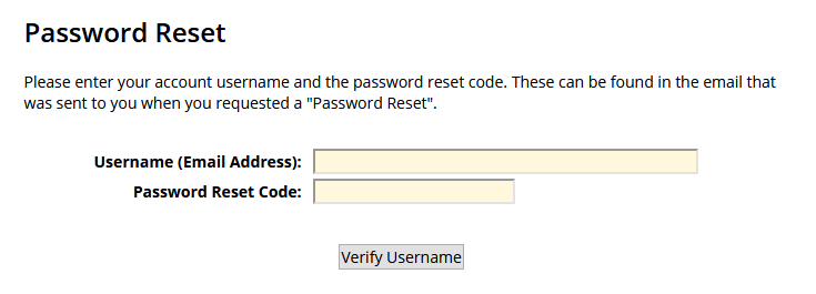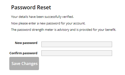 Once successful you will see the same page shown above to input your new password on screen.