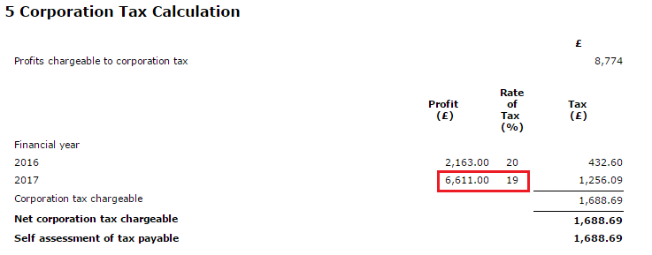Note: If postings are made to the components of corporation tax (codes 3820, 3821. 3822, 3830, 3831, 3832), then those values will appear in the top section in the relevant boxes.
