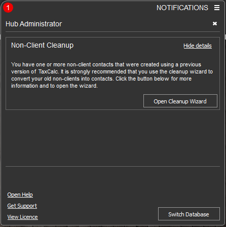 - Click on the Notifications area and expand the Non-Client Cleanup panel.