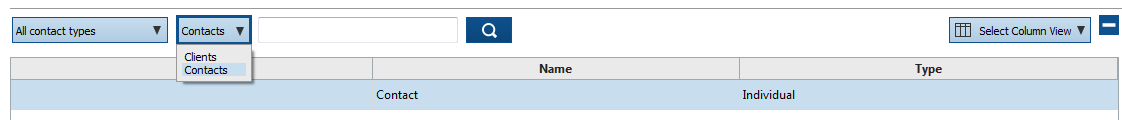 - At the top of the screen, change the view from Clients to Contacts.