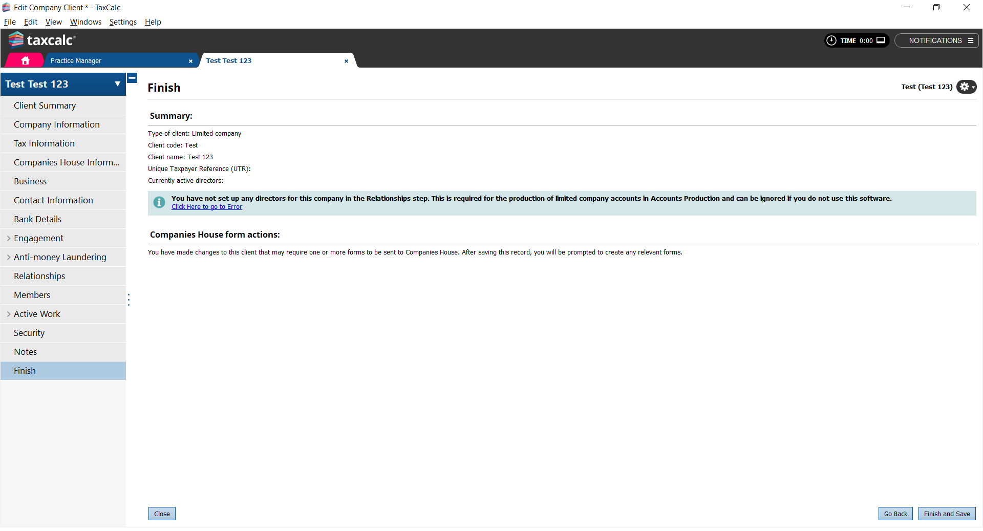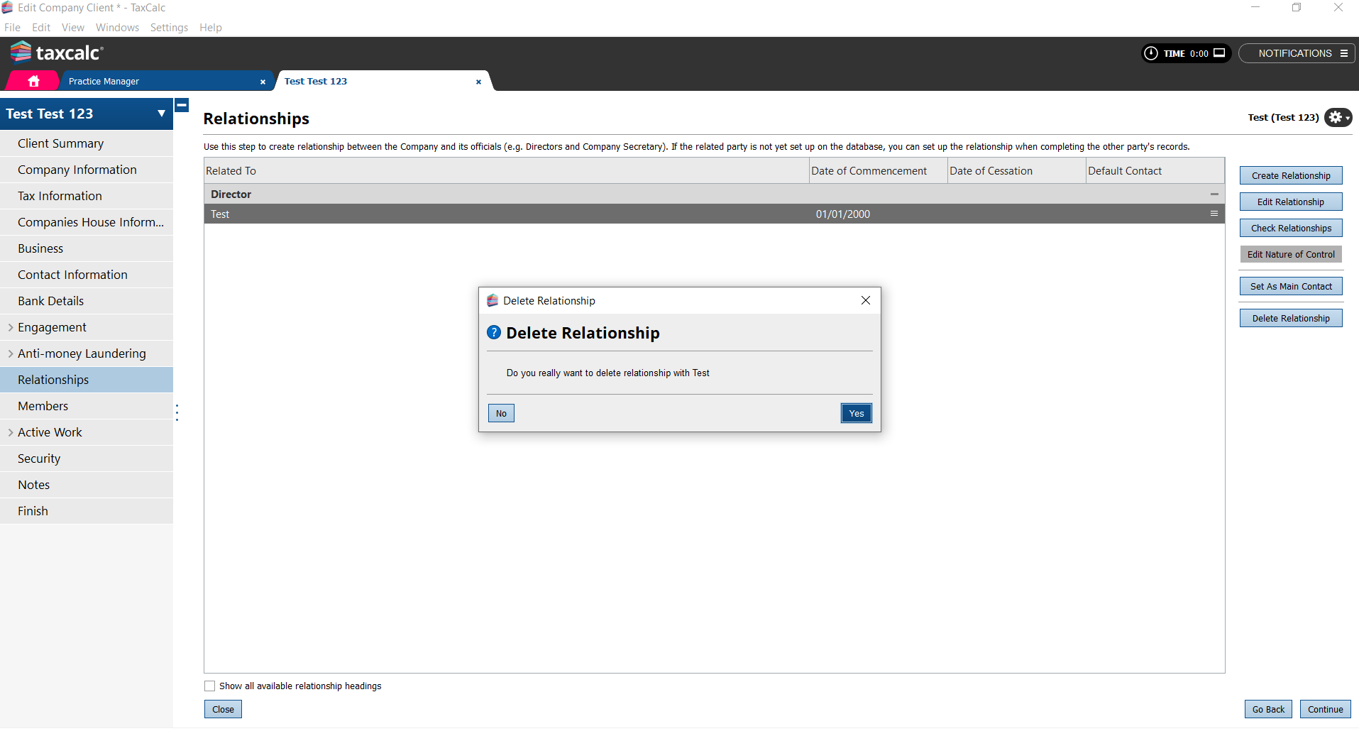 4. To be able to amend the Type of Company you must first delete any relationships setup.