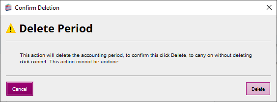6. If you have created any accounting period(s) then these will have to be deleted. 7. In Practice Manager, select the client and click Open in Accounts Production. 8. From the Open Client dialog, select the period. 9. Click Delete Period.