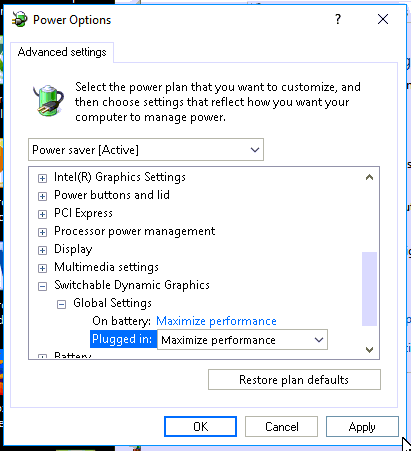 - Navigate to Switchable Dynamic Graphics > Global Settings and ensure