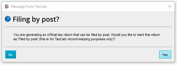 Making sure a paper return is counted correctly as being filed in TaxCalc