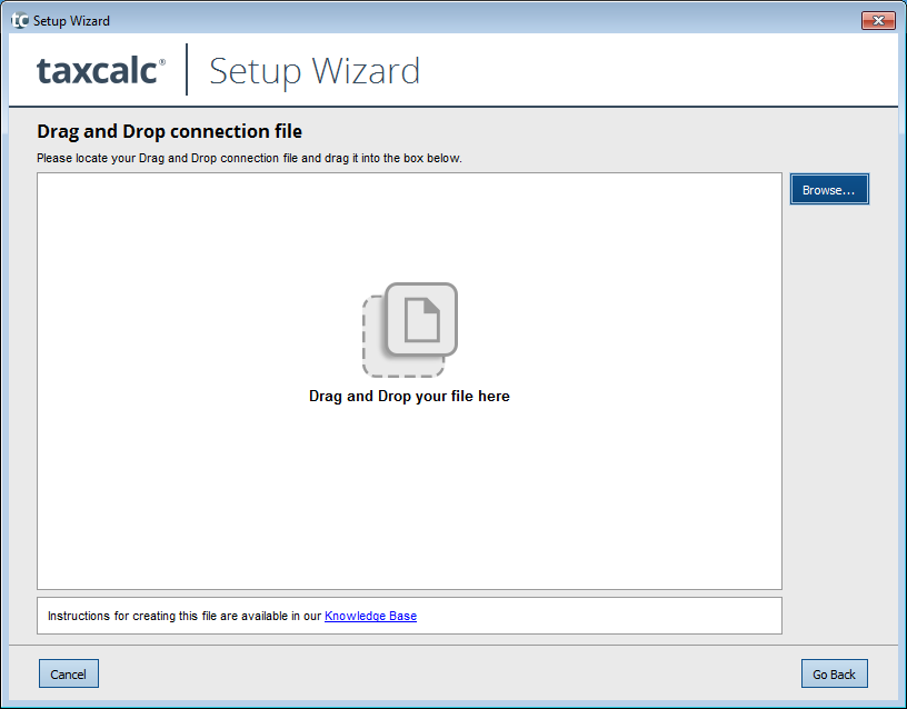 b) On the additional machineClick on the drag and drop message at the bottom of the "Cannot Connect to Database" window, and you will see the window below. Find the database connection file (ASP_DB_Connection.txt) you created in Step 4 and drag and drop it onto this screen.