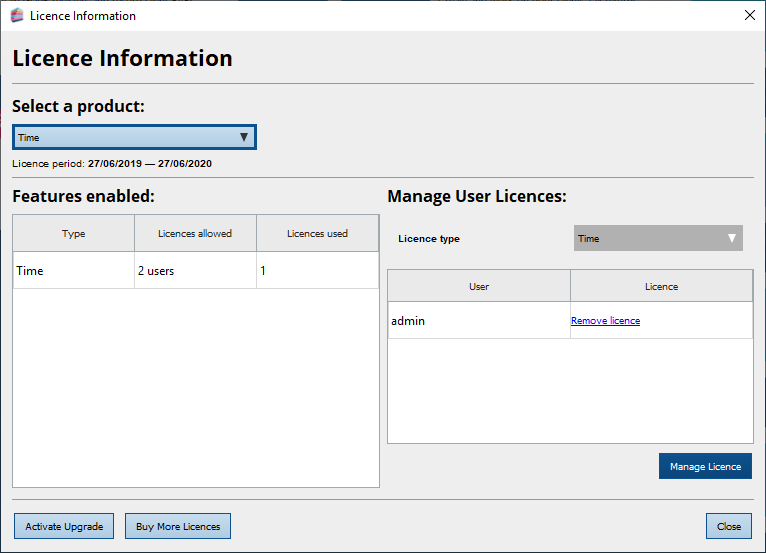 To get started with Time, one user licence is included with your initial purchase, plus a Hub Administrator licence.