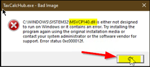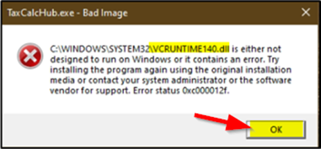 TaxCalcHub.exe – Bad Image C:\\WINDOWS\SYSTEM21\VCRUNTIME140.dll & MSVCP140.dll