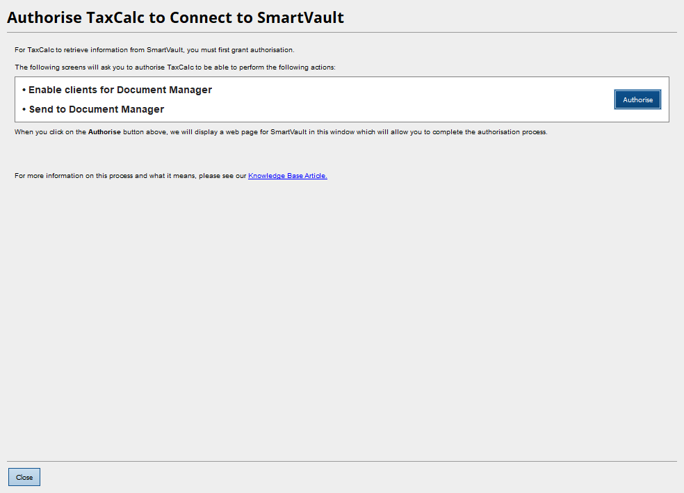You have now successfully authorised the use of the SmartVault API within TaxCalc and can now utilise the integrated Document Manager functionality.