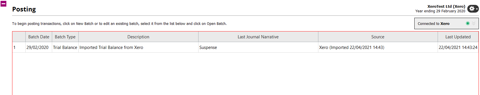 Please note: Xero functionality requires users to be on version 11.15.087 or higher. Please go to Help > About to verify your software version and update as required, to continue to use the integrations with Xero. You will see in the top right-hand side of the Posting screen that you are now Connected to Xero online. To disconnect, select the down arrow and click Disconnect.