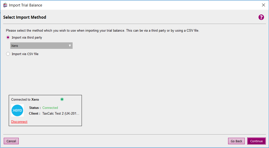 Note: If the relevant client is greyed out during the import stage and showing as 'already connected' after you have disconnected them within TaxCalc, this means that the client needs to be disconnected from within their Xero portal. If you require further assistance around this you should contact Xero customer support.