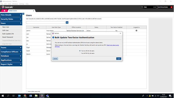 TaxCalc offers you the ability to log in using an extra layer of security by using two-factor authentication. In order to use two-factor authentication, you will need to use an authentication application if you don’t have one already, to provide the second factor of the authentication. See KB3189 - Authentication Applications and How to Use Them for details on how to do this. More information on how the functionality works can be found in our video below. You should only need to enter the PIN to log in once every 30 days on each device that you use.