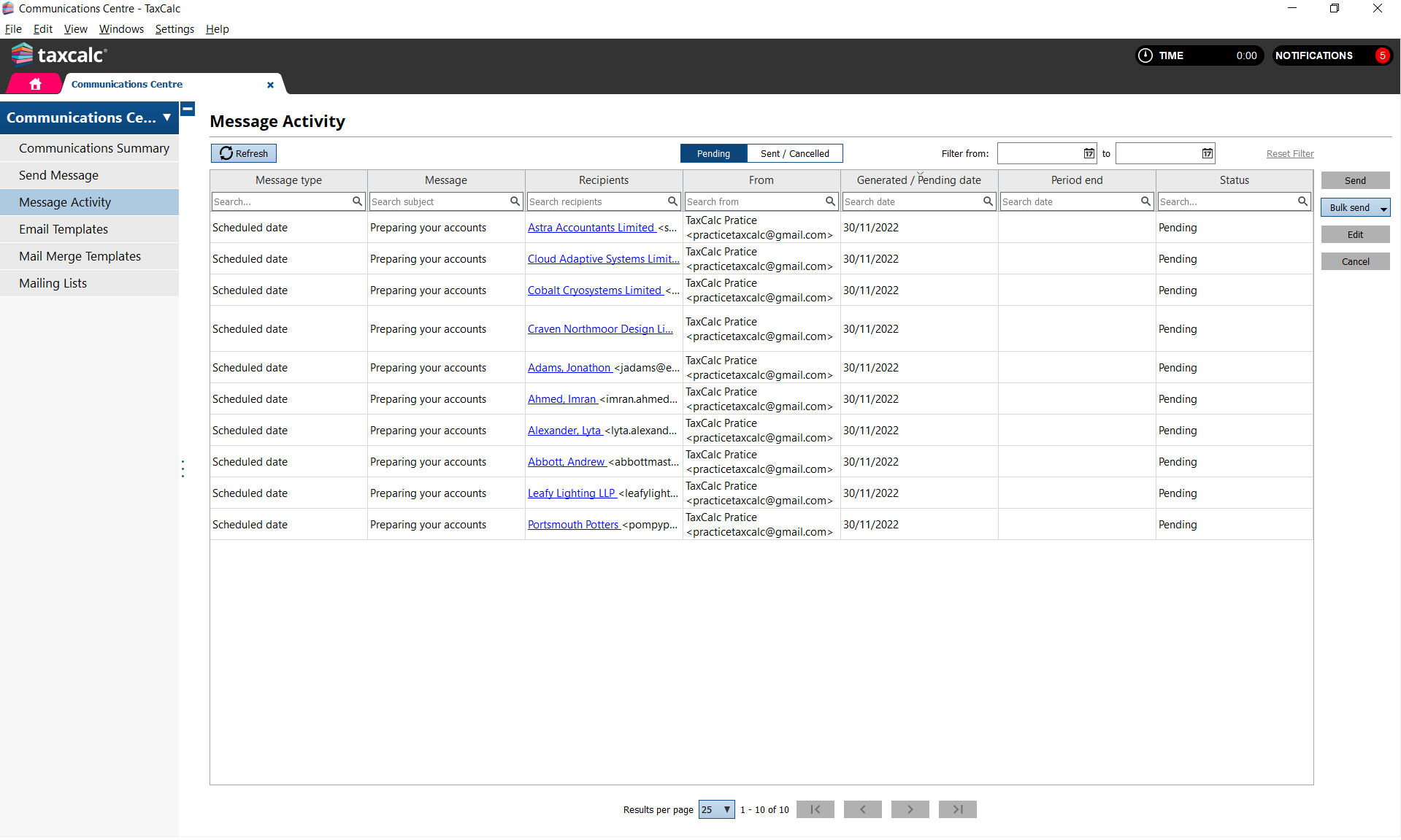Now select to Send, Bulk send, Edit or Cancel the pending message.
