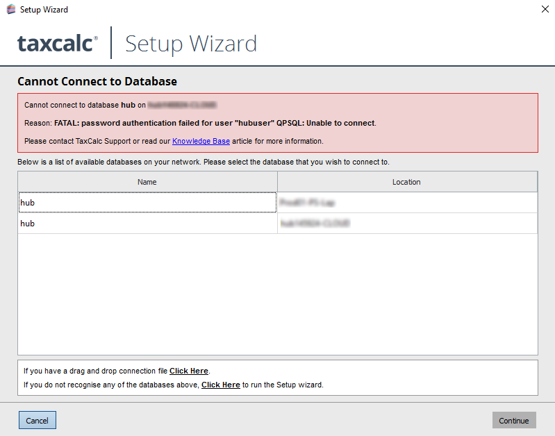 A QPSQL password authentication failed for user "hubuser" may occur on the initial installation of TaxCalc and prevent connection to the database. This issue is caused by the use of illegal symbols when creating the Postgres root database password. As this issue can only occur on the initial installation of TaxCalc, no data will be present and the program can be re-installed. To resolve the following programs should be uninstalled through the Windows Control Panel.
