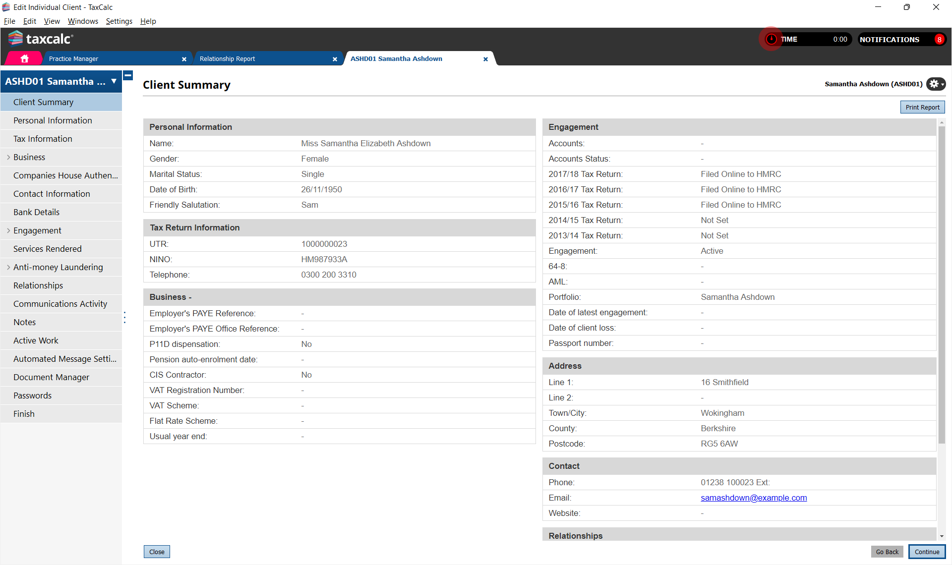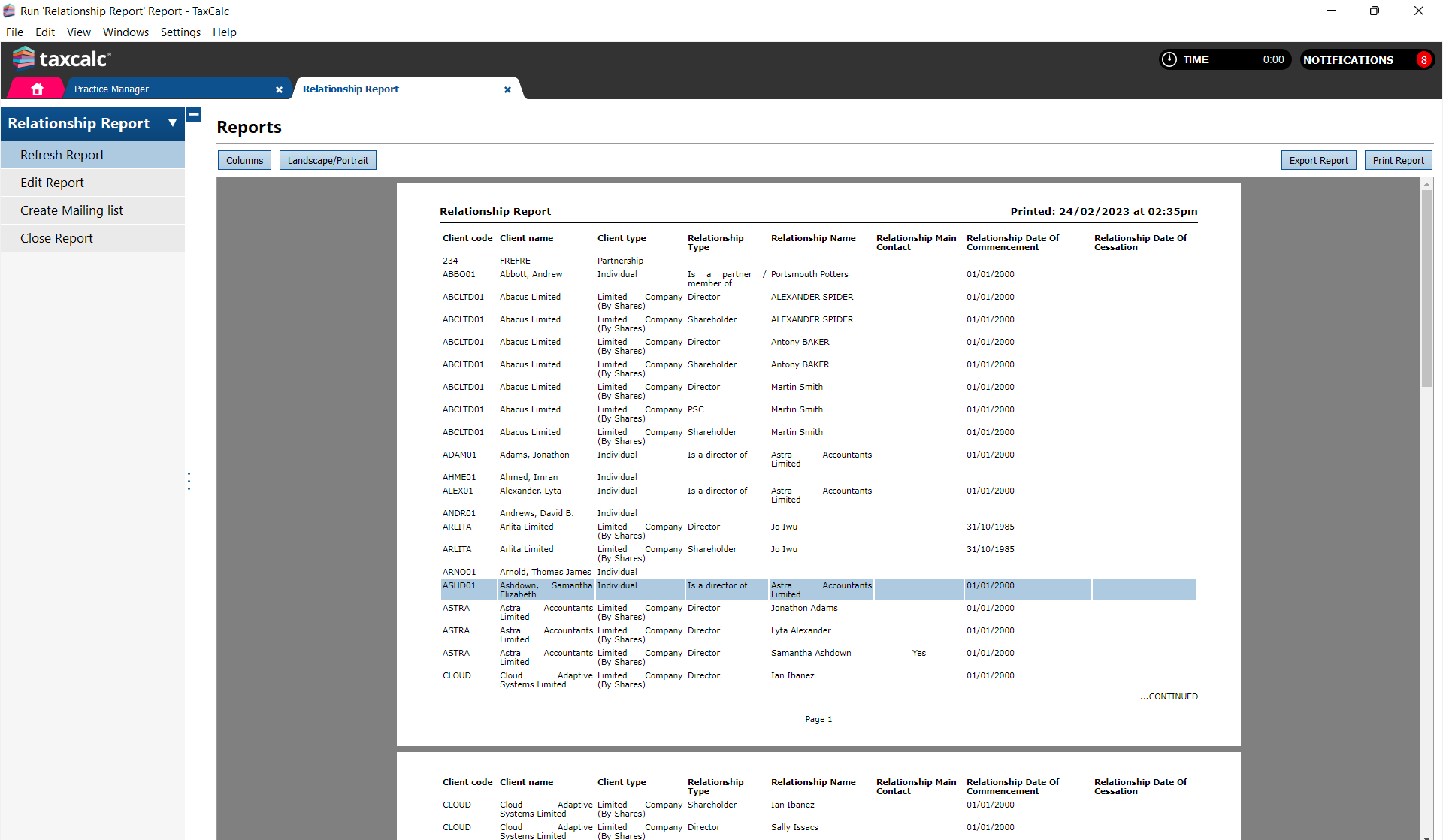 Within a report that includes relationship data, simply click on the relationship and the client record will open in Practice Manager.