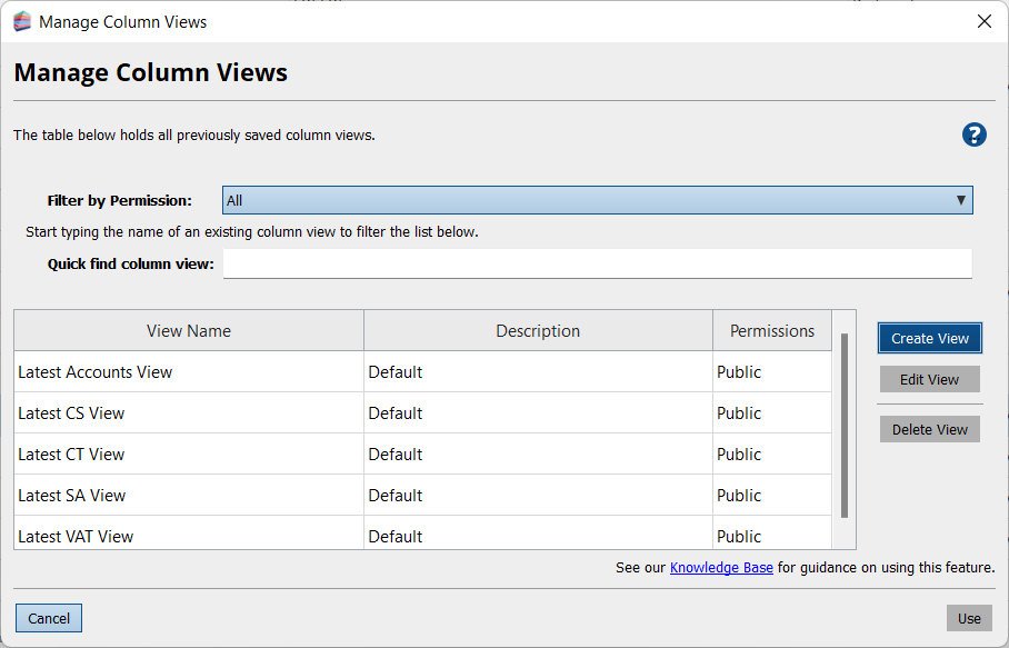 You can create and manage default views within the Practice Manger clients screen to ensure you're seeing the information most pertinent to you and your practice. You can also select from the following default views already setup: