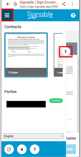 When an eSign envelope is sent, how do I view all documents within Signable on a mobile phone