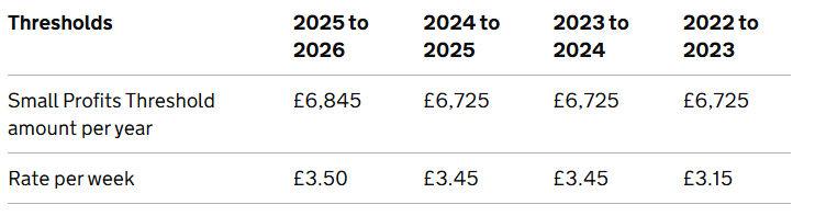 For further information please refer to https://www.gov.uk/self-employed-national-insurance-rates