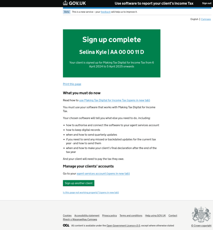 After the sign up is complete, the client can be set up in TaxCalc's Quarterly Filer, ready for submitting data. Useful links