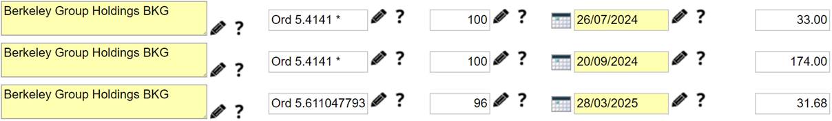 Below is some useful information surrounding the data held within the Dividend Database for the 2024-25 tax year. For information relating to other years, please see Dividend Database, useful information Redde Northgate Renamed to ZIGUP in May 2024 CentralNic Group Renamed to Team Internet Group in 2023 abrdn Private Equity Opportunities Trust Renamed to Patria Private Equity Trust Moneysupermarket.Com Group Renamed to MONY Group in May 2024 Bank of Georgia Group Renamed to Lion Finance Group in Feb 2025 JLEN Environmental Assets Group Renamed to Foresight Environmental Infrastructure in September 2024 Fonix Mobile FNX Renamed to Fonix in August 2024 Barratt Developments Renamed to Barratt Redrow in October 2024 The following companies performed a share split (or reverse split) during or just prior to the 2024-25 tax year.You may now have more (or less) shares, as confirmed in the new Share Certificates issued.(Cash may also have been paid at the split, which may be treated as a Capital Gain) TaxCalc lists the final holding from 2023-24 after importing, ‘Refresh’ will then load the 2024-25 payments. An asterisk indicates shares that will need reviewing After using ‘Refresh’, the holdings for 2024-25 (marked with an asterisk) must be updated manually The 2024-25 holding is a rounded down figure of the 2023-24 holding x a multiplier.