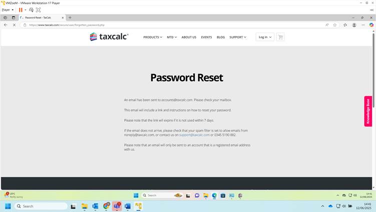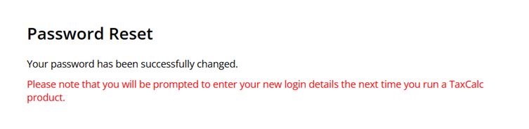 - Now when you log in to TaxCalc ensure you use the updated password.