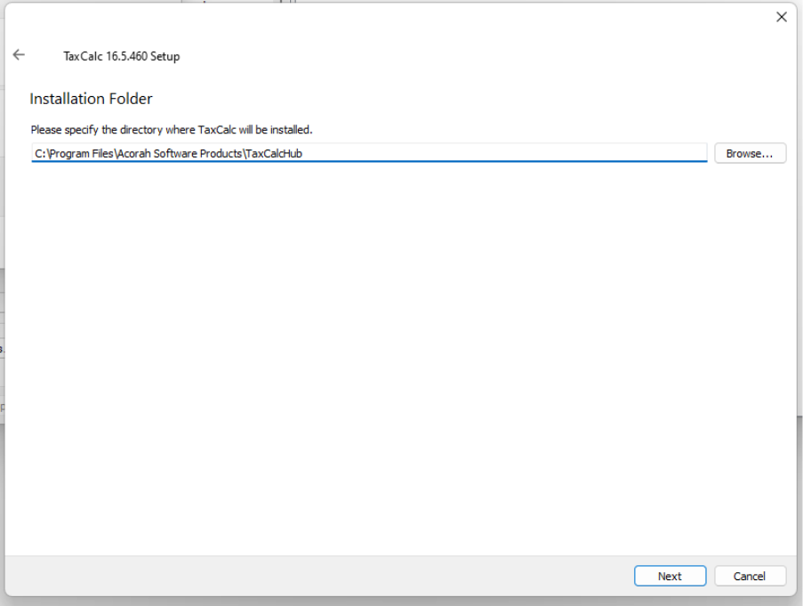 Note: - if you have pinned TaxCalc to your TaskBar you may need to unpin this and re-pin as this may be pointing to the old location - in some cases the new shortcut may not create automatically. To create a shortcut manually you can point to the locattion "C:\Program Files\Acorah Software Products\TaxCalcHub\TaxCalchub.exe" and used this.