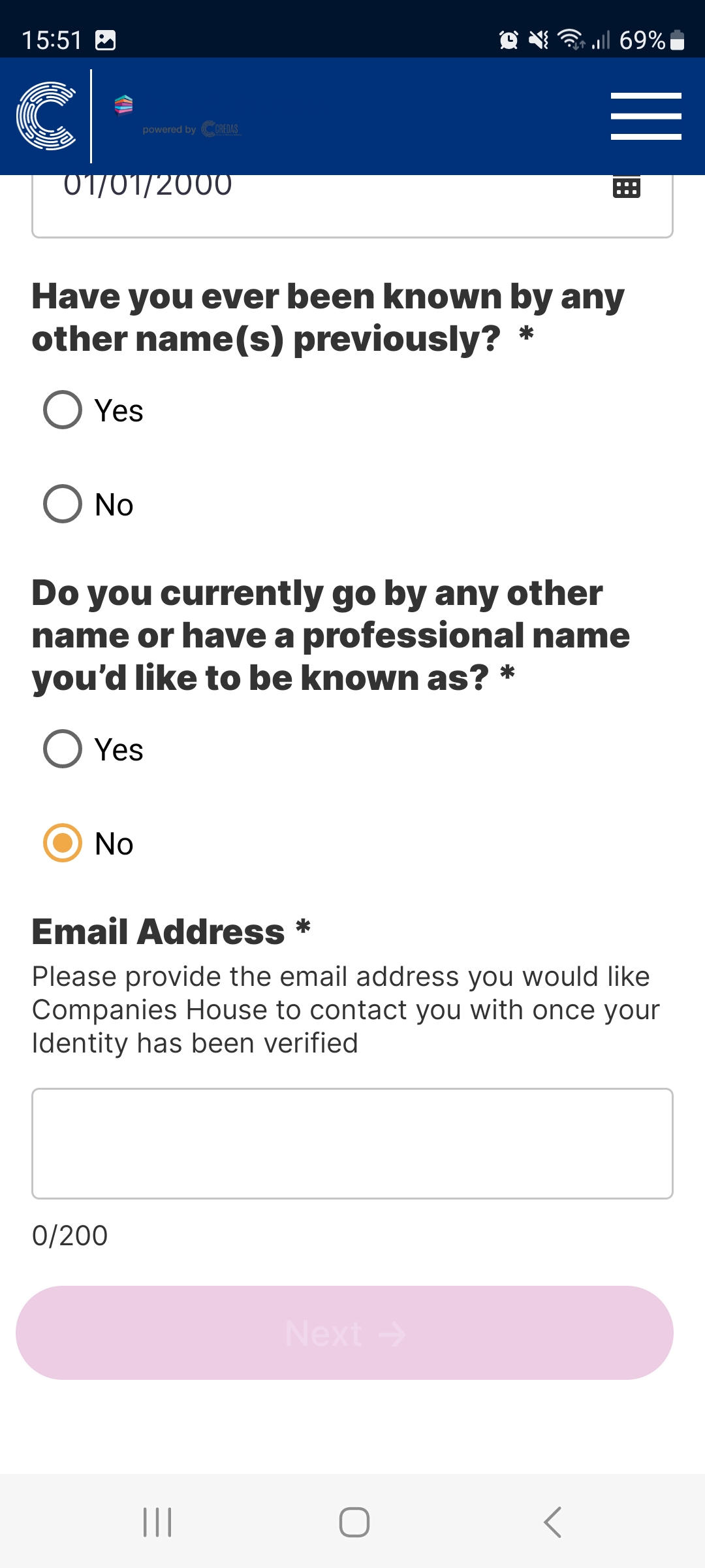 This journey applies when the option to initiate ‘Biometric Identity Check for Companies House - Option 1’ is selected in the wizard.