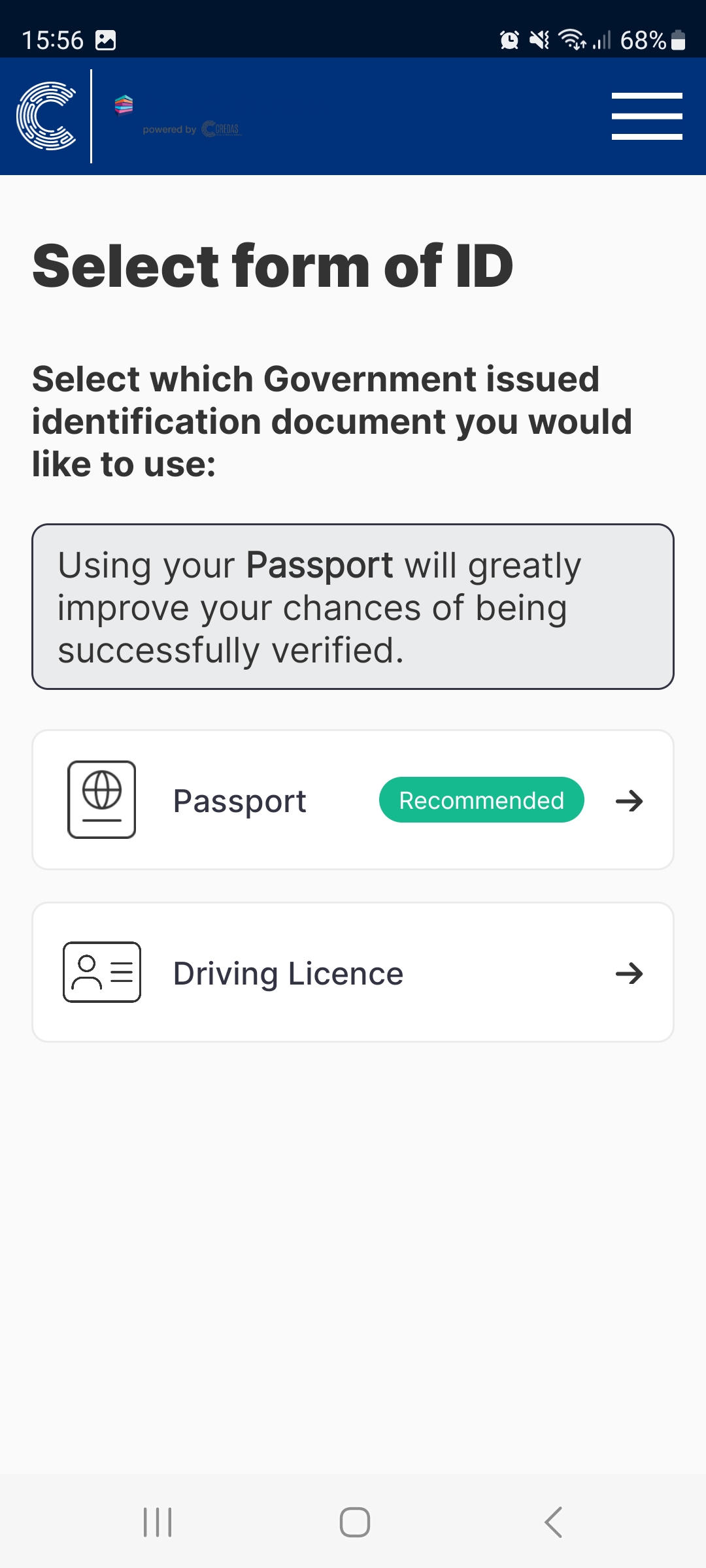 - In the next step your client will select which form of ID they would like to submit: