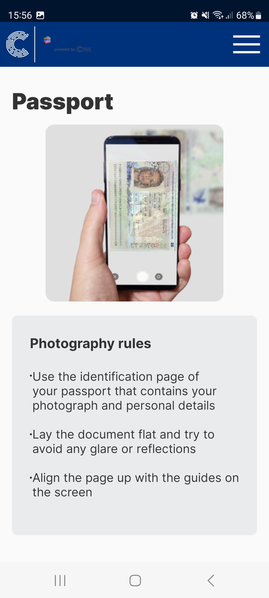 - There will be onscreen instructions given on how to take the best photograph of the document: