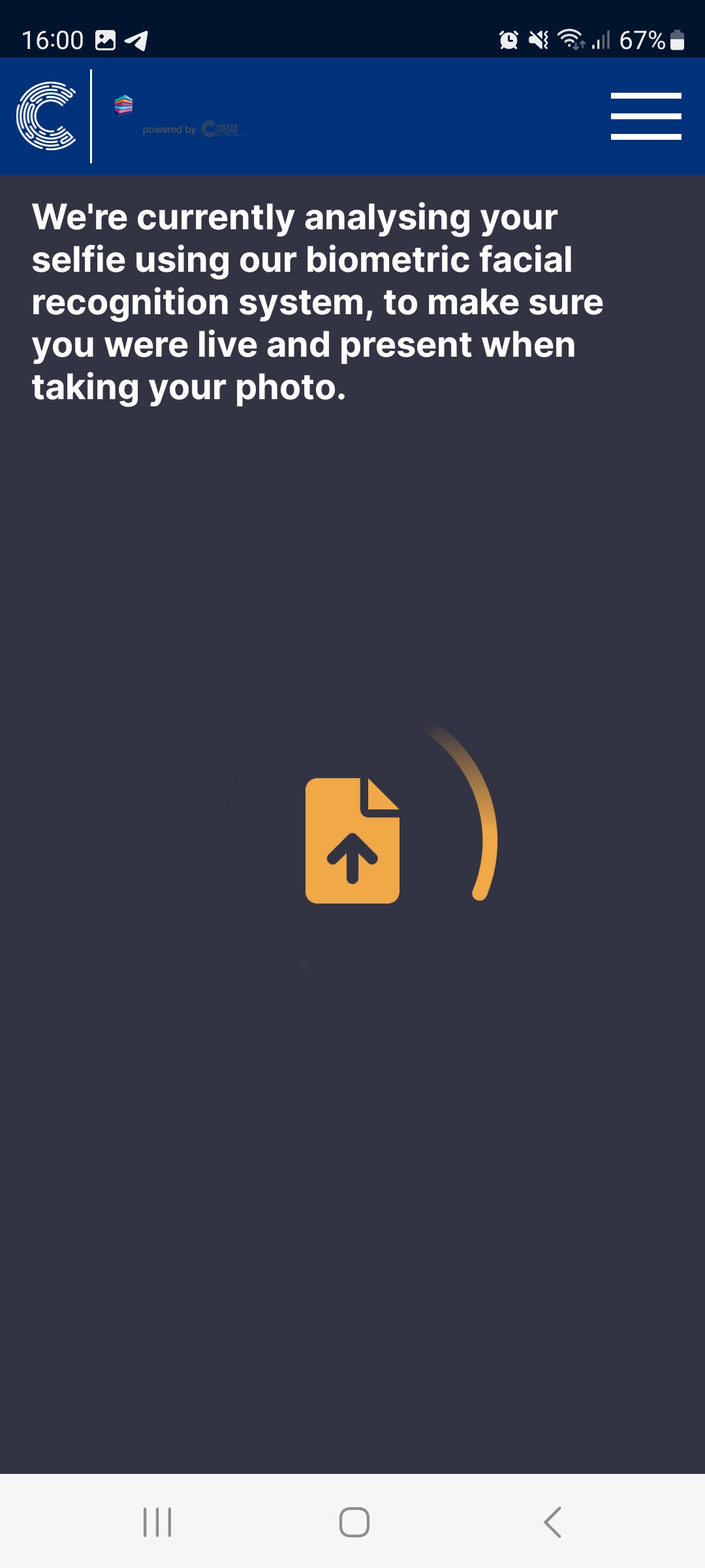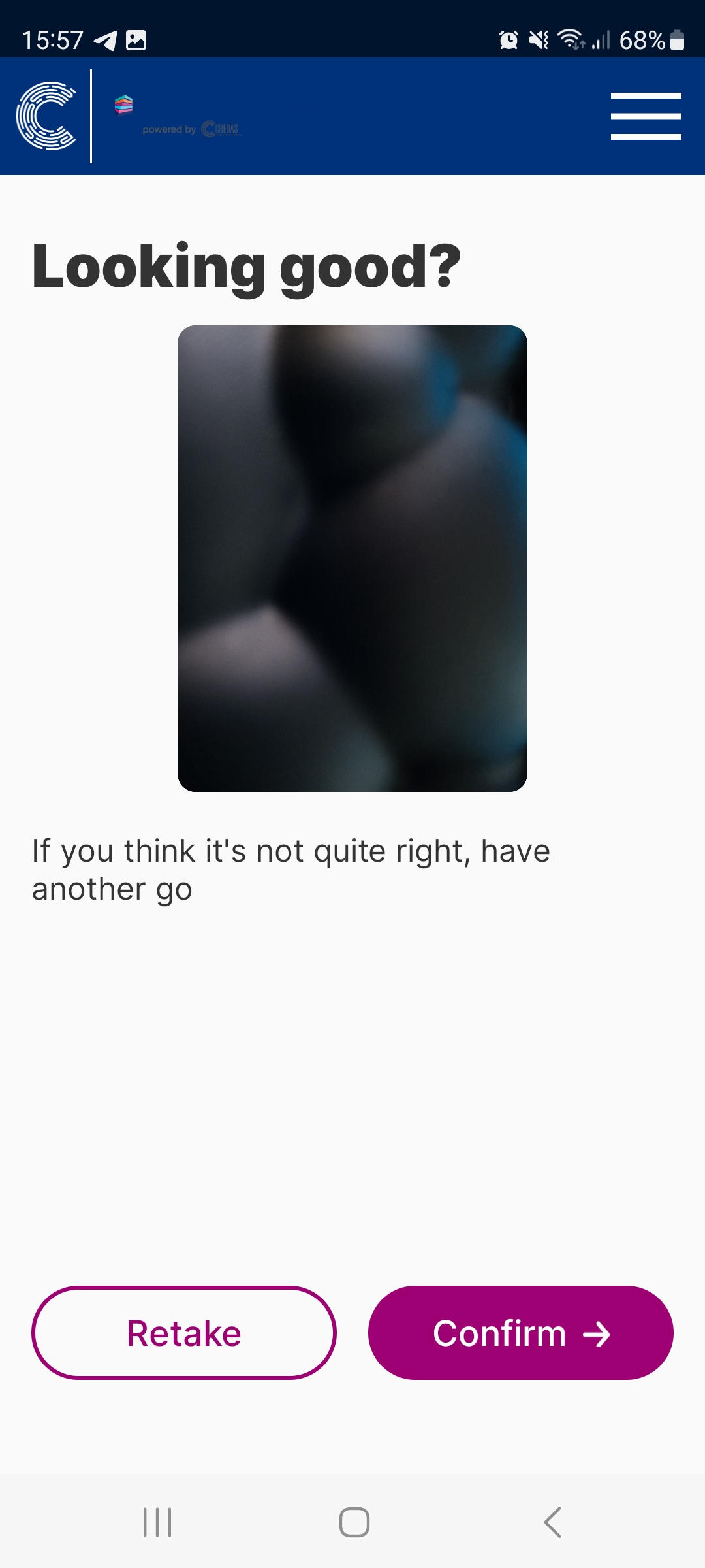 - It make take few seconds for the selfie image to pass initial checks:
