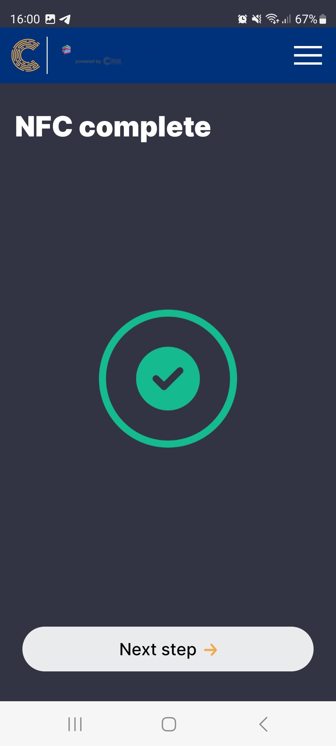 - Once the user has downloaded and opened the app, they have to follow on screen instructions to complete the check in the app: