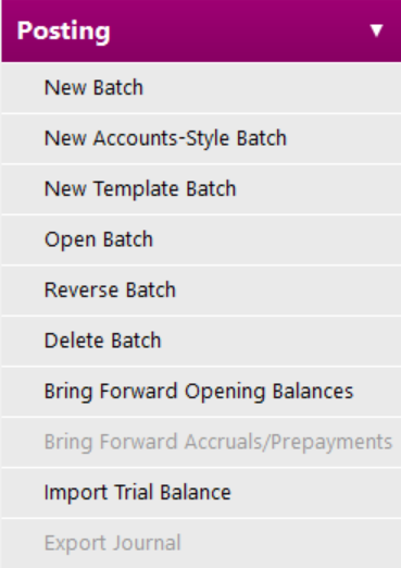 PostingThe new Accounts–Style batch is an alternative to the traditional posting batch which categorises postings as they would be displayed in the report.
